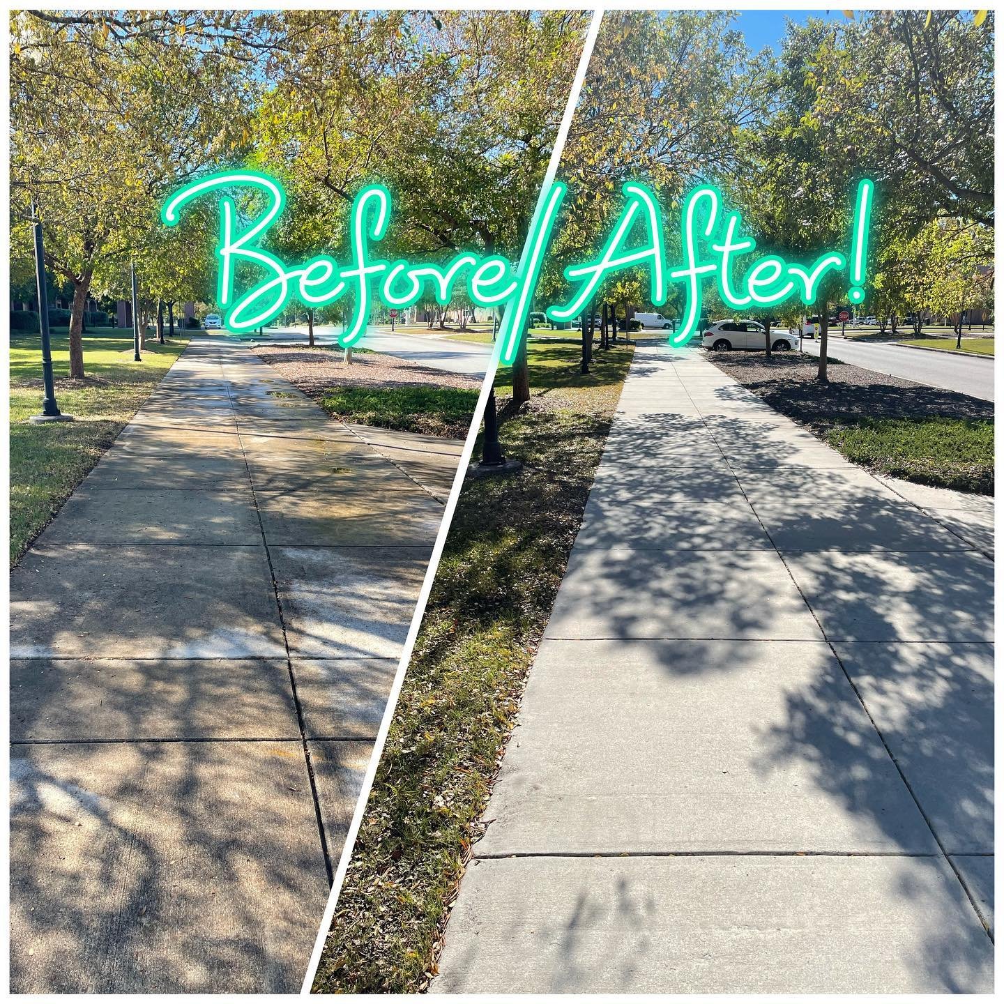 What started as a grimy, discolored walkway covered in dirt and algae is now a clean, bright, and welcoming path for visitors. Our professional team used advanced power washing techniques to bring this concrete back to life, showcasing the difference regular maintenance can make.